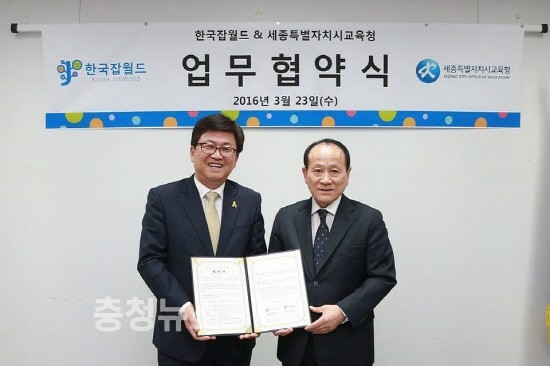 세종시교육청은 한국잡월드의 자유학기제 지원 및 진로직업체험교육을 위한 진로탐색 프로그램이 원활하게 추진될 수 있도록 잡월드가 진행하는 프로그램을 홍보하여 학교가 진로․직업체험 프로그램을 활용할 수 있도록 힘을 보태기로 했다.