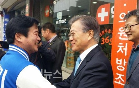더불어민주당 문재인 전대표가 29일(화) 서산ㆍ태안을 방문하고 야권 후보의 무소속 출마로 3자구도가 되어 박빙의 승부가 예상되는 충남 최고의 관심 선거구인 서산ㆍ태안의 더불어민주당 조한기 후보를 찾아 격려했다.