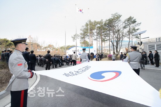 정부세종청사 총리실 게양대에서 열린 새 정부기 게양식에는 이춘희 세종시장과 김성렬 행자부차관, 시민대표 등이 참석했다.