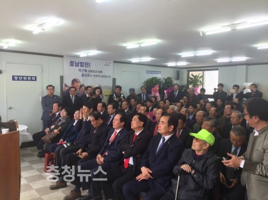 3선 도전에 나서는 새누리당 홍문표 후보(예산·홍성)가 30일 오전 홍성군에 이어, 1시 예산군 후보자 사무실에서 지지자 2천여명이 참석한 가운데 개소식을 갖고 필승을 다짐했다.
