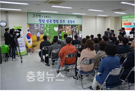 고 후보는 이날 유성구 봉명동 선거사무소에서 청년들과 함께 청년성공창업을 위한 토크쇼를 통해 청들과의 소통의 시간을 갖고 300명규모의 선거대책본부 출범식과 함께 본격적인 제20대 총선전에 돌입했다.