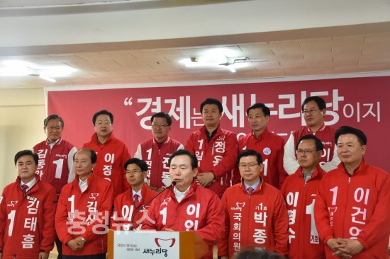 30일(수) 오후 새누리당 대전시당에서 열린 이날 합동 기자회견에는 대전 동구 이장우 후보, 중구 이은권 후보, 서구갑 이영규 후보, 서구을 이재선 후보, 유성갑 진동규 후보, 유성을 김신호 후보, 대덕구 정용기 후보, 충남 아산갑 이명수 후보, 아산을 이건영 후보, 보령.서천 김태흠 후보, 당진 김동완 후보, 논산.계룡.금산 이인제 후보, 세종 박종준 후보 등 13명이 참석했다.