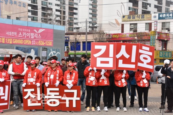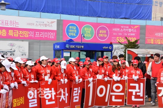 이인제 최고위원은 “여기 있는 새누리당 후보 7명에게 모두 표를 몰아준다면 반드시 호남 고속철도 열차가 증편이 될 수 있도록 할 것"이라고 밝혔다.