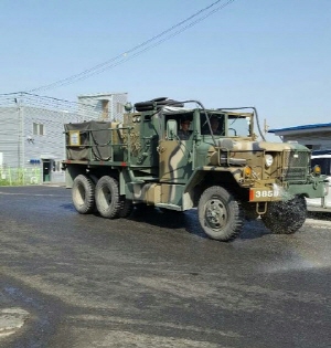 ▲ 공군부대에서 지원한 제독차량이 구제역 방역에 나서고 있다 (사진제공- 서산시청)