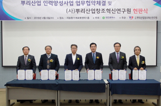 시는 6일 오후 2시 대전테크노파크(대전TP) 지능형기계로봇센터에서 대전테크노파크, (사)뿌리산업창조혁신연구원, 한밭대․한남대․한국폴리텍Ⅳ대 산학협력단 등 6개 기관과 뿌리산업 인력양성사업의 효율적 추진 등을 위한 업무협약을 체결했다고 밝혔다.