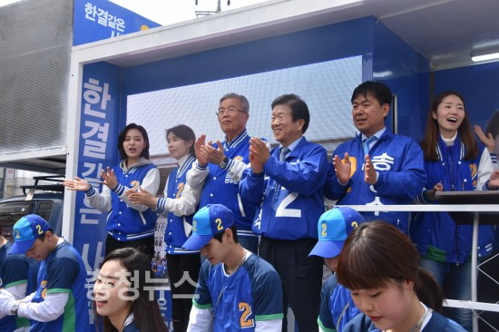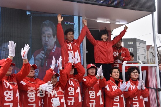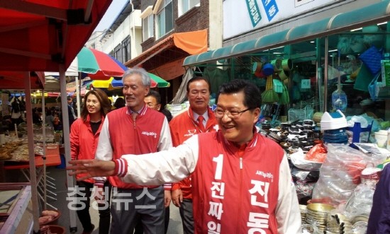 이밖에 새누리당 비례대표 12번 유민봉 후보도 이날 오후 유성구 장대동 유성전통시장을 찾아 유성갑 진동규 후보를 정면에서 지원했다.