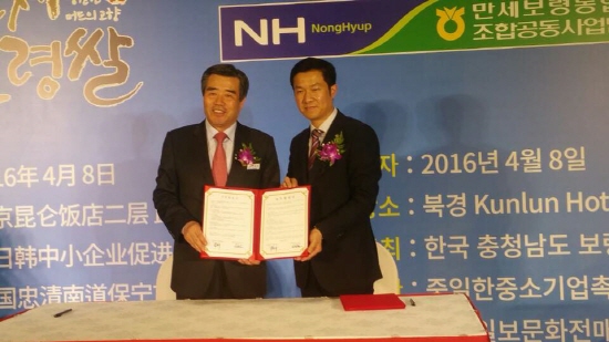충남 보령시는 지난 8일 북경 쿤룬호텔에서 ‘2016 만세보령쌀 및 첨단 RPC 설명회’를 개최하고, 만세보령쌀 삼광미의 대중국 수출을 위한 양해각서를 체결하는 등 중국 쌀시장 수출의 교두보를 마련했다.