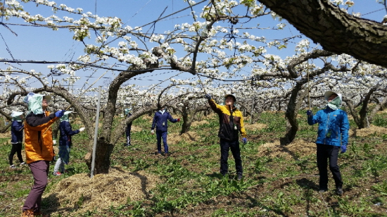 인공수분 적기에는 일시적으로 많은 인력이 필요해 매년 아산시와 아산원예농협, 음봉농협, 둔포농협 직원들이 농촌일손돕기에 적극적으로 나서 일손부족으로 어려움을 겪고 있는 과수농가의 인력난에 조금이나마 도움을 주고 있다.