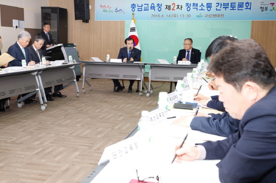 충남도교육청(교육감 김지철)은 14일 서천 국립생태원에서 도교육청 간부와 교육지원청 교육장 등 35명이 참석한 가운데 올해 2차 교육정책 토론회를 가졌다.