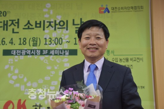 본사 최형순 취재본부장이 18일 대전시청 3층 세미나실에서 열린 제20회 대전소비자의날 행사에서 소비자 유공자로 대전시장상을 수상했다.