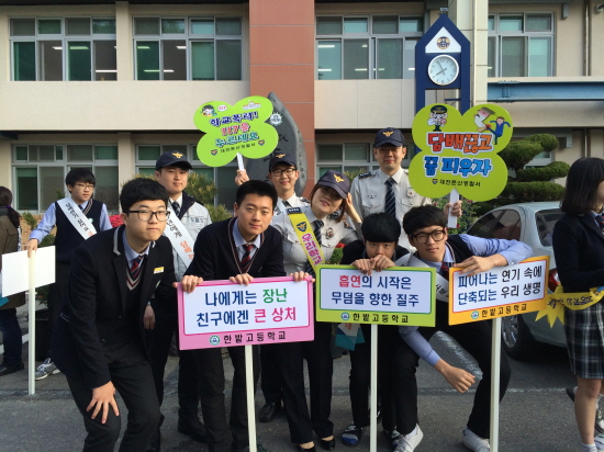 대전둔산경찰서(서장 김재훈)에서는 2016. 4. 19(화) 07:30경 대전 서구 갈마동 한밭고등학교에서 여성청소년과 직원, 한밭고등학교 교사, 학생 등 20여명이 참석한 가운데 청소년 선도 및 금연을 위한 캠페인을 실시하였다.
