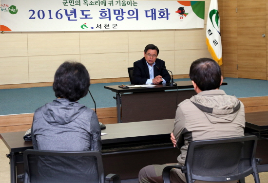 한편, 지난 2015년 희망의 대화는 정책동행과 연계하여 총6회에 걸쳐 56명의 주민이 참여했고 서천군은 주민이 제언한 민원을 처리하면서 주민과 함께하는 소통행정을 펼치고 있다. 5월중 희망의 대화는 5월 18일 군청 대회의실에서 열린 예정이다.