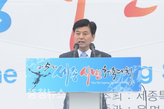 ▲ 이춘희 세종시장 ‘제5회 세종시민 체육대회’대회사 / 충청뉴스 최형순 기자
