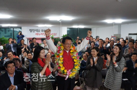 제20대 국회의원 선거 충남 공주.부여.청양 지역은 이번에 지역구가 하나로 합쳐지면서 새누리당 정진석 후보와 현역 더불어민주당 박수현 의원이 맞붙었고 결국 정 후보가 4선 고지에 올랐다.