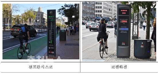 자전거 교통량 측정기는 덴마크 코펜하겐, 미국 포틀랜드․샌프란시스코 등 해외 선진 자전거도시에 설치돼 자전거 정책수립 및 평가에 활용되고 있다.