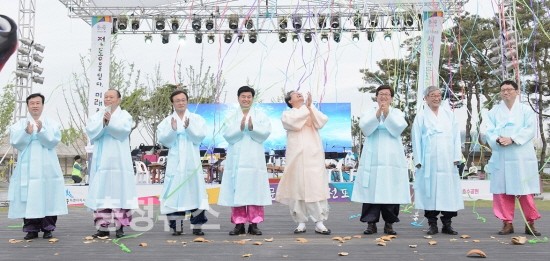 ▲ ‘2016 세종민속문화의 해’ 선포식이 열린 가운데 이춘희 시장을 비롯한 시민들이 공연을 즐기고 있다.