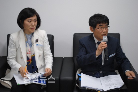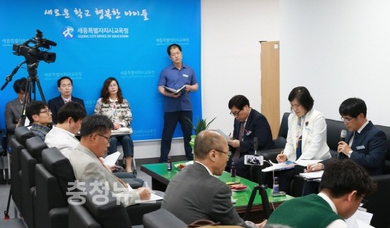 ▲ 10일 브리핑 하고있는 세종시교육청 김보엽 정책기획관(우),박영신 사무관(좌) / 충청뉴스 최형순 기자