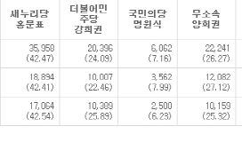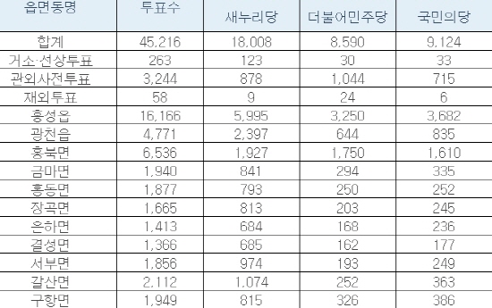 ▲ 충남 홍성 지역 정당 투표 득표 현황