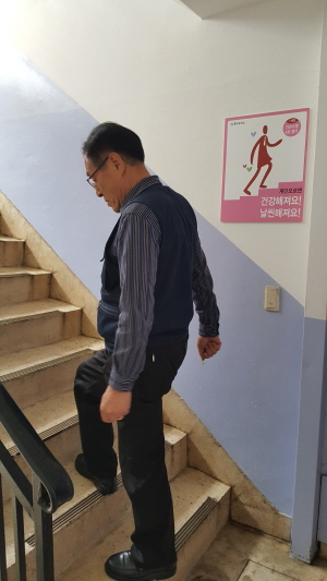 계단오르기는 한단씩 오르기부터 한번에 2단 오르기, 옆 오르기 등 신체상태에 따라 선택하면 되고, 어르신의 경우에는 계단을 올라 갈 때만 이용하고 내려올 때는 무릎 연골이 상할 우려가 있을 뿐 운동효과가 없기 때문에 삼가야 한다고 담당직원은 설명했다.