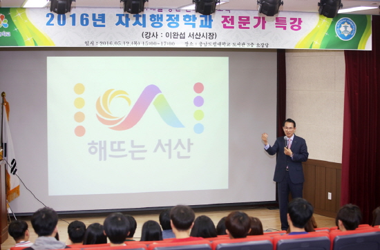 충남 이완섭 서산시장이 12일 충남도립대학교서 특강을 실시했다고 밝혔다. 이번 특강은 미래의 공무원들이 모여 있는 충남도립대학교의 자치행정과 학생들이 평소 역동적인 발전을 거듭하고 있는 서산시의 발전상과 중앙부처 요직을 두루 거친 이 시장의 살아있는 행정경험을 듣고 싶다는 여망에 따라 실시됐다.