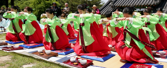 이날 행사는 한국예술단 ‘해오름’의 축하공연을 시작으로 전통예법에 따라 어른의 평상복, 예복 등을 입으며 성년으로서의 바른 몸가짐을 당부하는 가례, 술 마시는 예법을 일러주고 성년 됨을 축하하는 초례, 이름 대신 부를 수 있는 자(字)를 지어주는 명자례 등 순으로 거행됐다.