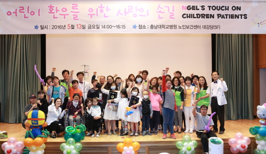 충남대학교병원(병원장 김봉옥)이 5월 13일(금) 오후 2시부터 노인센터 5층 강당에서「어린이 환우를 위한 사랑의 손길」행사를 개최했다고 밝혔다.