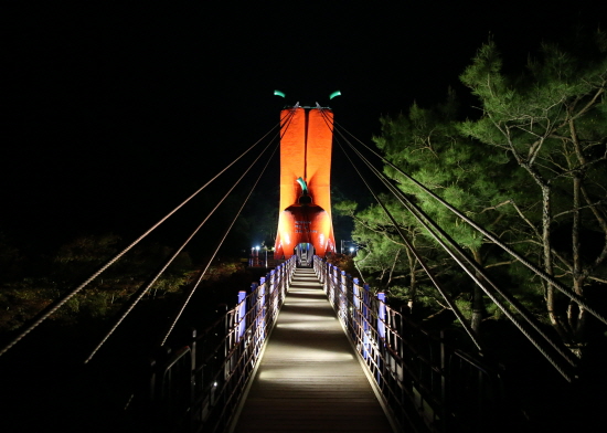 청양군, 천장호 출렁다리 야간 조명 설치 아름다움 더해~