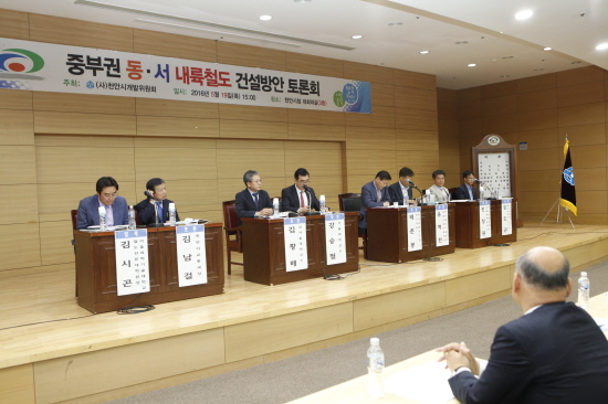 충남 천안시는 중부권 동·서 내륙철도 건설 방안을 모색하는 토론회가 (사)천안시개발위원회(회장 안상국)주최, 천안시 주관으로 19일 오후 3시 시청 대회의실에서 개최됐다고 밝혔다.