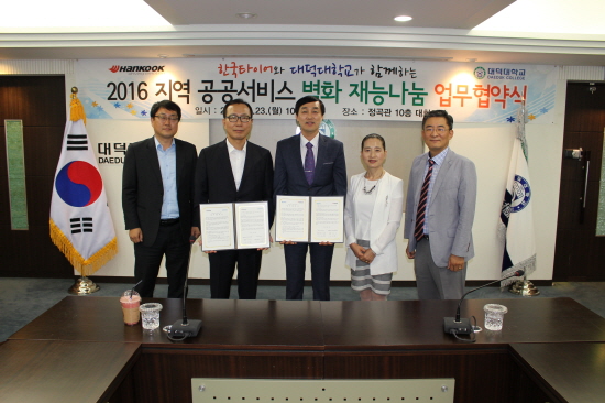 대덕대학교는 한국타이어(주)대전공장과 23일(월) 대덕대 정곡관 10층 대회의실에서 산학협력 협약식을 가졌다고 밝혔다.