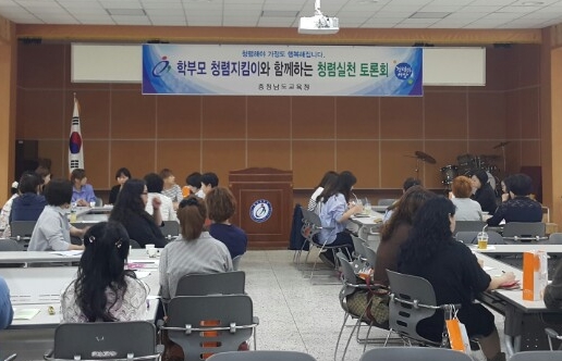 충남교육청(교육감 김지철)이 24일 아산 충무교육원에서 ‘청렴의 이해와 공감 및 아름다운 청렴실천 방안’이란 주제로 학부모 청렴지킴이와 함께하는 청렴실천 토론회를 개최했다.