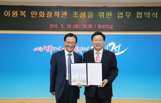 대전광역시(시장 권선택)는 24일(화) 오후 2시 시청 중회의실에서 덕성여자대학교 이원복 총장과‘이원복 만화창작관(가칭)’조성을 위한 업무협약을 체결했다고 밝혔다.