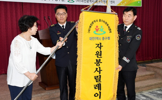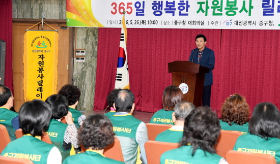 대전 중구(구청장 박용갑)는 26일 구청 대회의실에서 자원봉사로 365일이 행복한 중구를 만들기 위해 25개 기관단체가 참여한 가운데 ‘자원봉사 릴레이 발대식’을 개최했다고 밝혔다.
