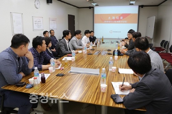 ▲ 세종시의회 ‘청춘발전소 연구모임’(대표 이태환의원)이 25일 한화첨단소재(주)에서 세종사업장장(강희준)과의 지역청년 일자리 관련 자유질문을 가졌다.