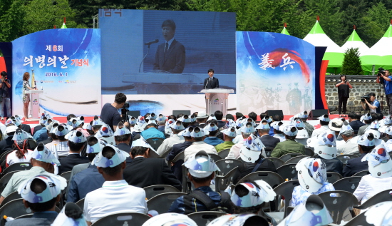 안희정 충남도지사가 1일 청양 목면 모덕사 일원에서 열린 제6회 의병의날 기념식에서 추모사를 통해 이같이 밝히고, 선조들의 희생을 기억하고 본받아 위기 극복에 최선을 다할 것을 강조했다.