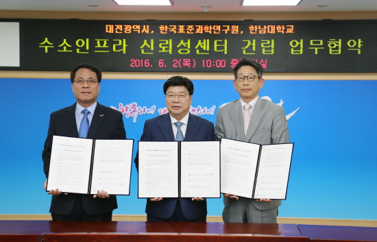 한남대는 2일 오전 10시 대전시청 중회의실에서 대전시, 한국표준과학연구원과 수소인프라 신뢰성센터 건립을 위한 업무협약을 체결했다고 밝혔다.