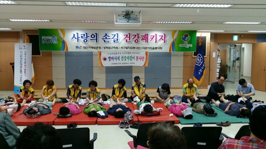 이날 행사는 상락침구학회의 전통 침, 서구발지압봉사단의 발 마사지 , 다운이미용봉사회에서 이미용봉사 등 재능나눔 실천을 통해 보훈가족의 건강향상에 기여하였다.