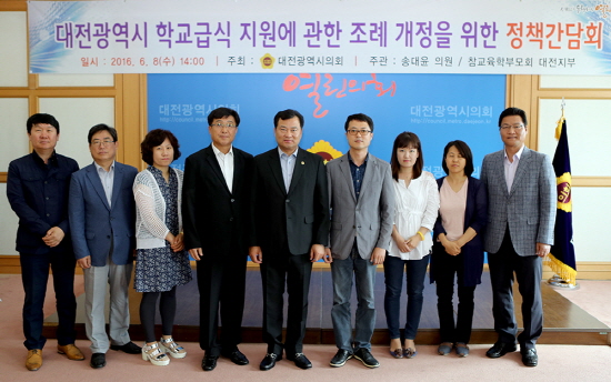 대전시의회 송대윤 교육위원장(유성구1, 더불어민주당)은 참교육학부모회 대전지부와 공동주관으로 8일 시의회 대회의실에서‘대전광역시 학교급식 지원에 관한 조례 개정 방안’에 대하여 간담회를 개최했다.