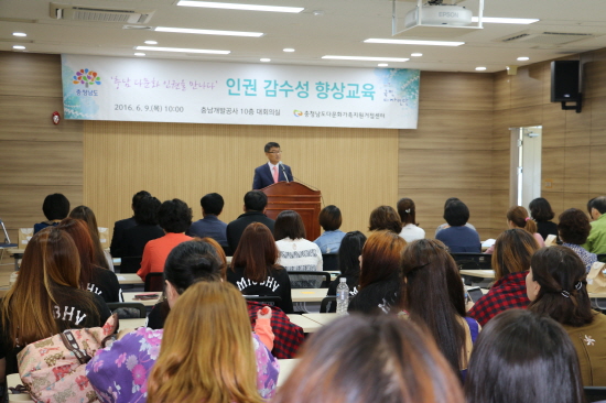 충남도는 9일 홍성에 위치한 충남개발공사에서 도내 다문화가족지원센터 및 결혼중개업체 종사자 100여 명을 대상으로 다문화 인권 교육을 실시했다.