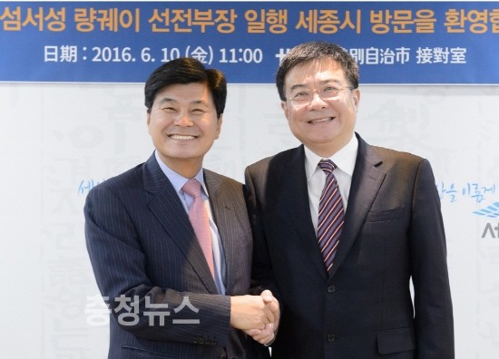 ▲ 이춘희 세종시장 - 량궤이 중국 섬서성 당위원회 선전부장 환영. 세종시 제공 / 충청뉴스 최형순 기자