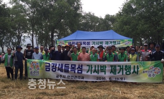 공주시(시장 오시덕)가 금강변 자전거도로 및 하천 주변에 자생하는 가시박 등 생태계 교란식물에 대한 환경정화 활동을 펼쳤다.