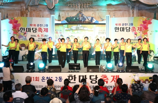 이날 축제는 지난해까지 개별 개최하던 온천1동과 2동의 축제가 통합돼 다채로운 공연 및 체험행사가 펼쳐지고, 50여개 단체가 참여하는 프리마켓과 먹거리장터도 열려 참가 주민들이 소통과 나눔의 즐거운 한때를 보냈다.