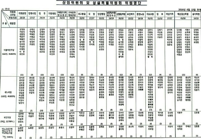 한편 20대 국회에서는 법제사법위원회와 여성가족위원회, 보건복지위원회의 위원 정수가 각 1명씩 늘어나는 반면 교육문화체육관광위원회와 외교통일위원회가 각 1명씩 줄어들었다.