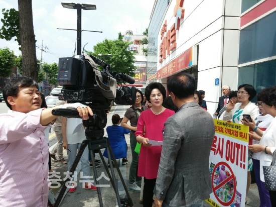 대전소비자단체는 롯데마트가 옥시제품을 매장에서 여전히 판매하는 것에 대해 규탄하고 판매중지를 요구했다.