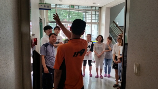 이번 훈련에는 주민센터 직원과 주민센터에 상주(근무)하는 공익, 중대본부 기간병, 관저마루 작은도서관 운영자, 소방관 등 17명이 참여하였으며, 화재를 가상한 대피훈련 및 화재진압 훈련과 교육이 진행되었다.