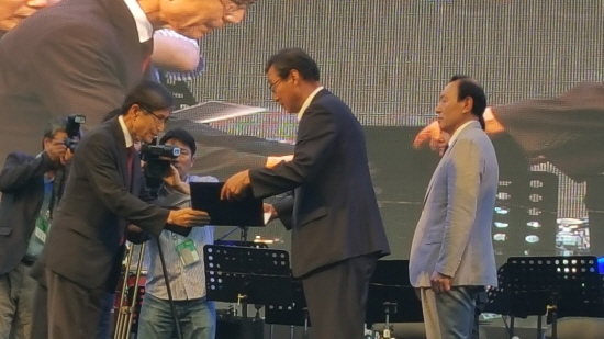 ▲ 박찬규 공공시설사업소장이 지난 13일 페스티벌 개막식에 참석 문화체육관광부 장관상 기관표창을 수상하고 있다.(사진제공- 예산군청)