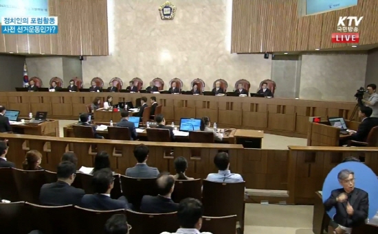 또한 참고인으로 나온 강원택 서울대 경제학과 교수는 "시장에서 경쟁을 통해 효율적이고 가장 값싼 소비를 하듯이 정치 시장에서도 자유로운 경쟁을 통해서 유권자들이 가장 적절한 후보를 찾는 것이 원칙이다"고 말했다.