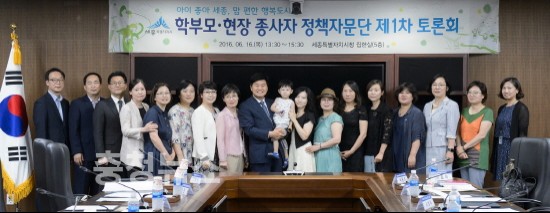 세종특별자치시(시장 이춘희)가 16일 오후 시청 집현실에서 정책자문단 20명이 참석한 가운데 학부모·현장 종사자 정책자문단 제1차 토론회를 개최했다.