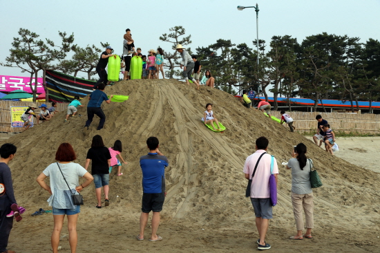 주말동안 춘장대 모래-Song Festival을 찾은 5만여명의 관광객들은 아이들에게 친근한 캐릭터인 아이언맨vs헐크, 슈퍼맨vs배트맨과태양의후예 송중기를 비롯한 마릴린 멀로, 국제시장 등 영화 주제 모래조각과 모래썰매타기 체험, 아마추어 모래조각 경연대회를 함께하며 즐거운 한때를 보냈다.