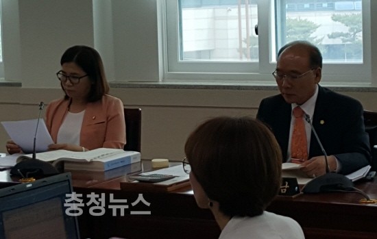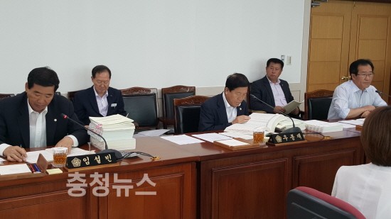 ▲ 사회를 보고있는 김보희 위원장, 좌측 앞으로 부터 임설빈,우종재,임재관 의원 / 충청뉴스 최형순 기자