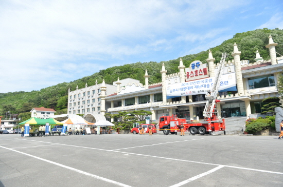 ▲ 지난 16일 공주유스호스텔에서 실시한 태풍대비 재난대응훈련 모습/ 사진제공- 공주시청